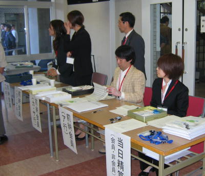 受付は、会場の入り口近くに設け、実行委員2名に加えて大学院生のアルバイト等6名で対応した。事前に参加費等を支払っていた方が多かったこともあり、受付は全体としてスムーズにいったと思う。ただ、初日の朝には、受付がやや混雑し、行列ができた時間帯もあった。JRの電車がほぼ30分おきなので、参加者がまとまって駅に着き、受付へ一団となって来られたため、時間帯によって混雑が生じたのは、やむを得ないことであった。ただ、これも土曜朝の2〜3回だけのことだったのでお許しいだきたい。